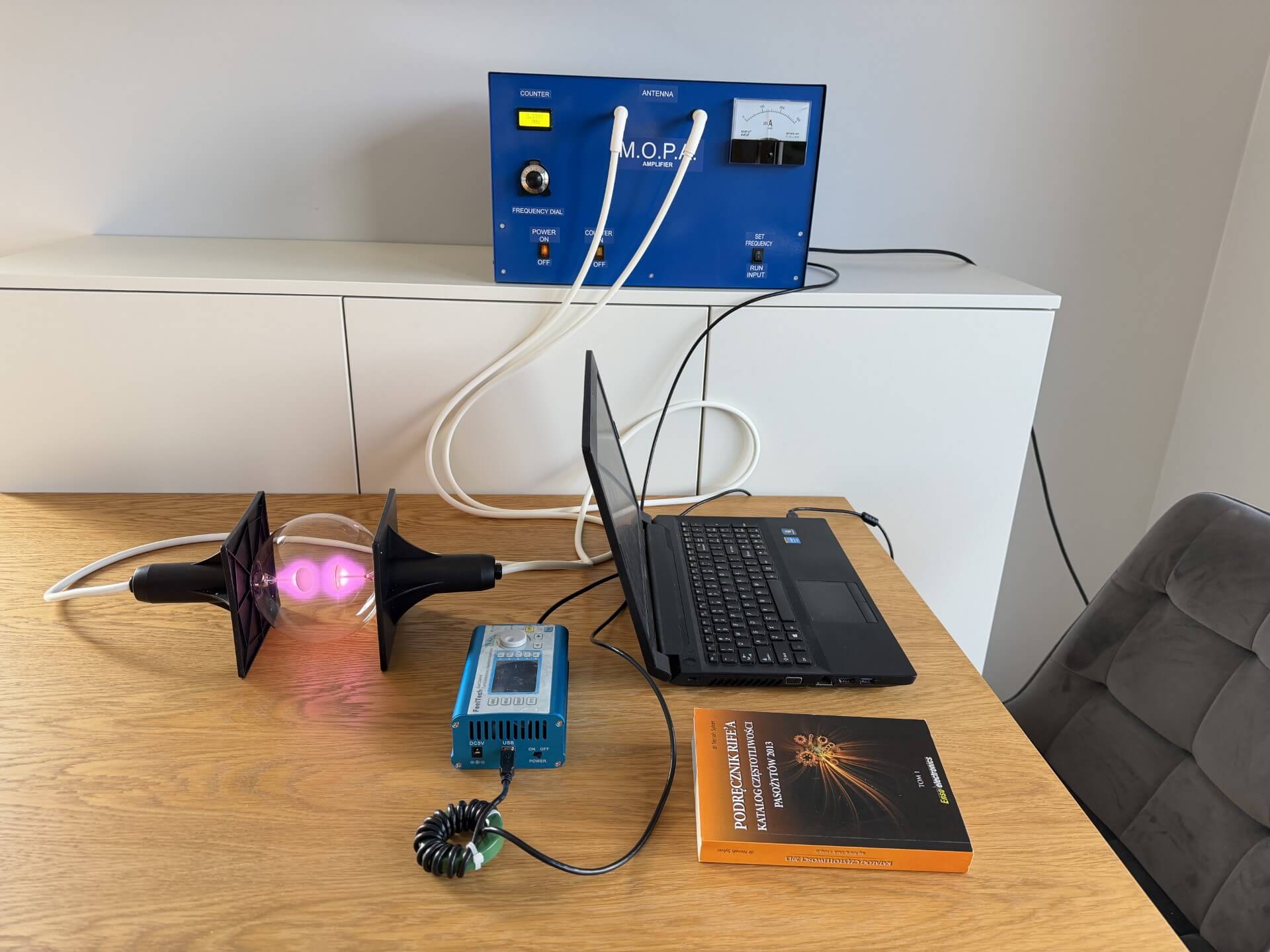Ma — i to kluczowe. Rife testował różne gazy przez blisko trzy dekady. Wybrał hel, ponieważ jest stabilny, przewodzi energię w sposób czysty, umożliwia tworzenie pola kierunkowego i pozwala generować szerokie spektrum częstotliwości. Wiele tańszych urządzeń stosuje argon lub mieszaniny — bo są tańsze i łatwiej dostępne. Hel jest jednak gazem, który Rife stosował głównie według najlepszej dostępnej wiedzy historycznej. Lampa plazmowa Rife M.O.P.A. wypełniona jest helem i zaprojektowana z dwiema elektrodami — jedną prostą i jedną pod kątem 45° — co odtwarza kierunkowy charakter emisji oryginalnych konstrukcji. To nie jest detal estetyczny. To techniczny wybór, który wpływa na jakość i zakres pola generowanego podczas sesji.